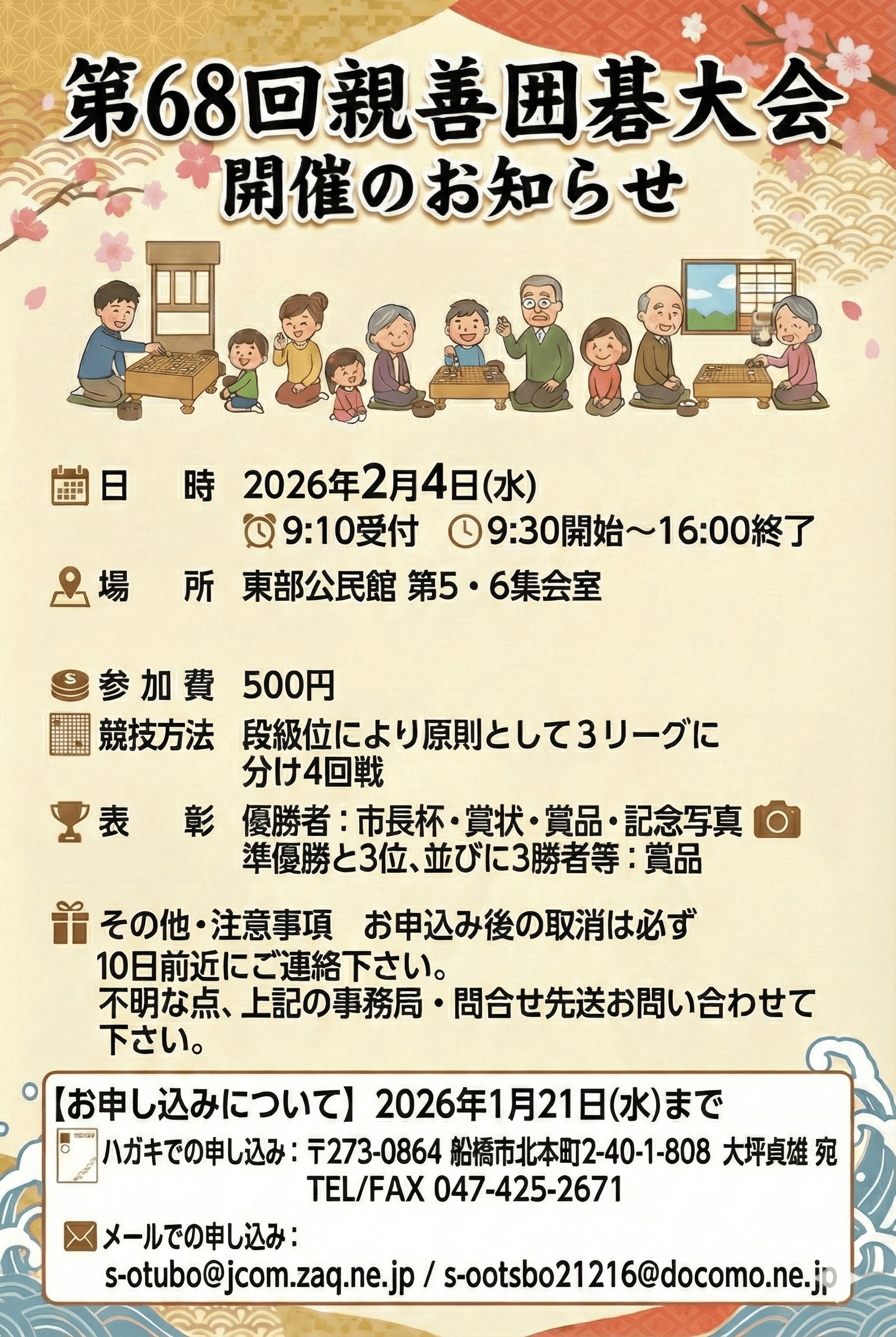 囲碁大会開催日が3月2日に変更!