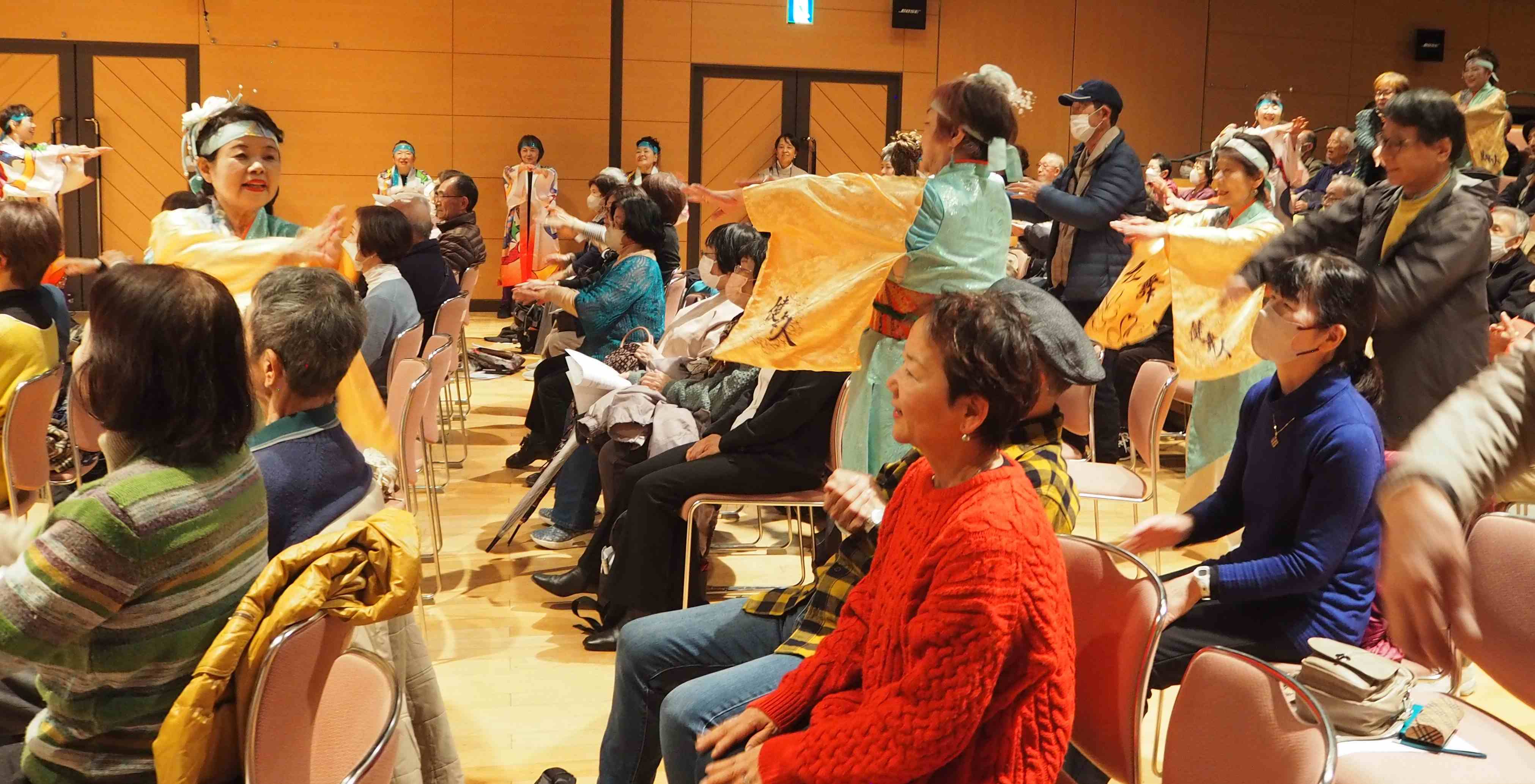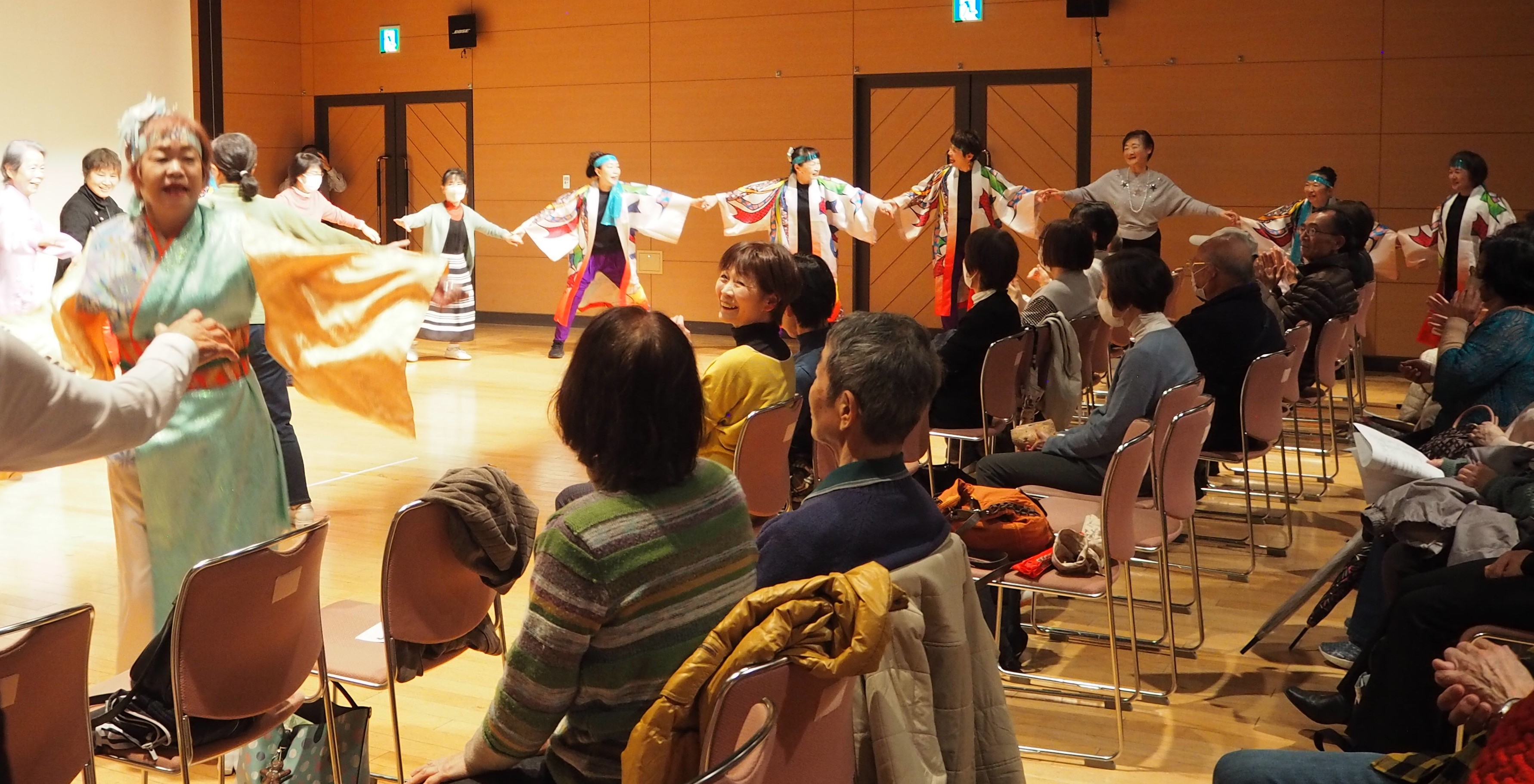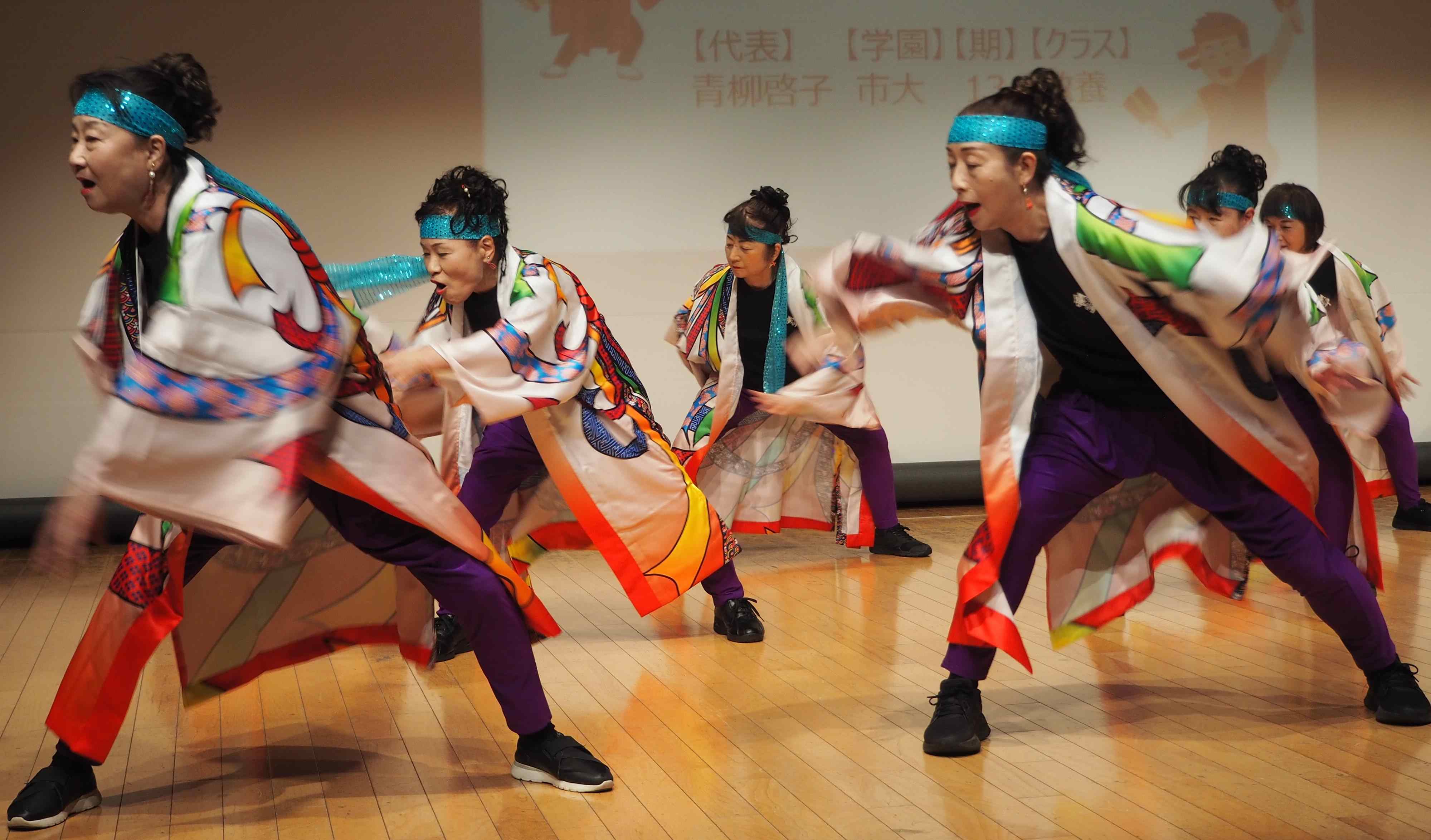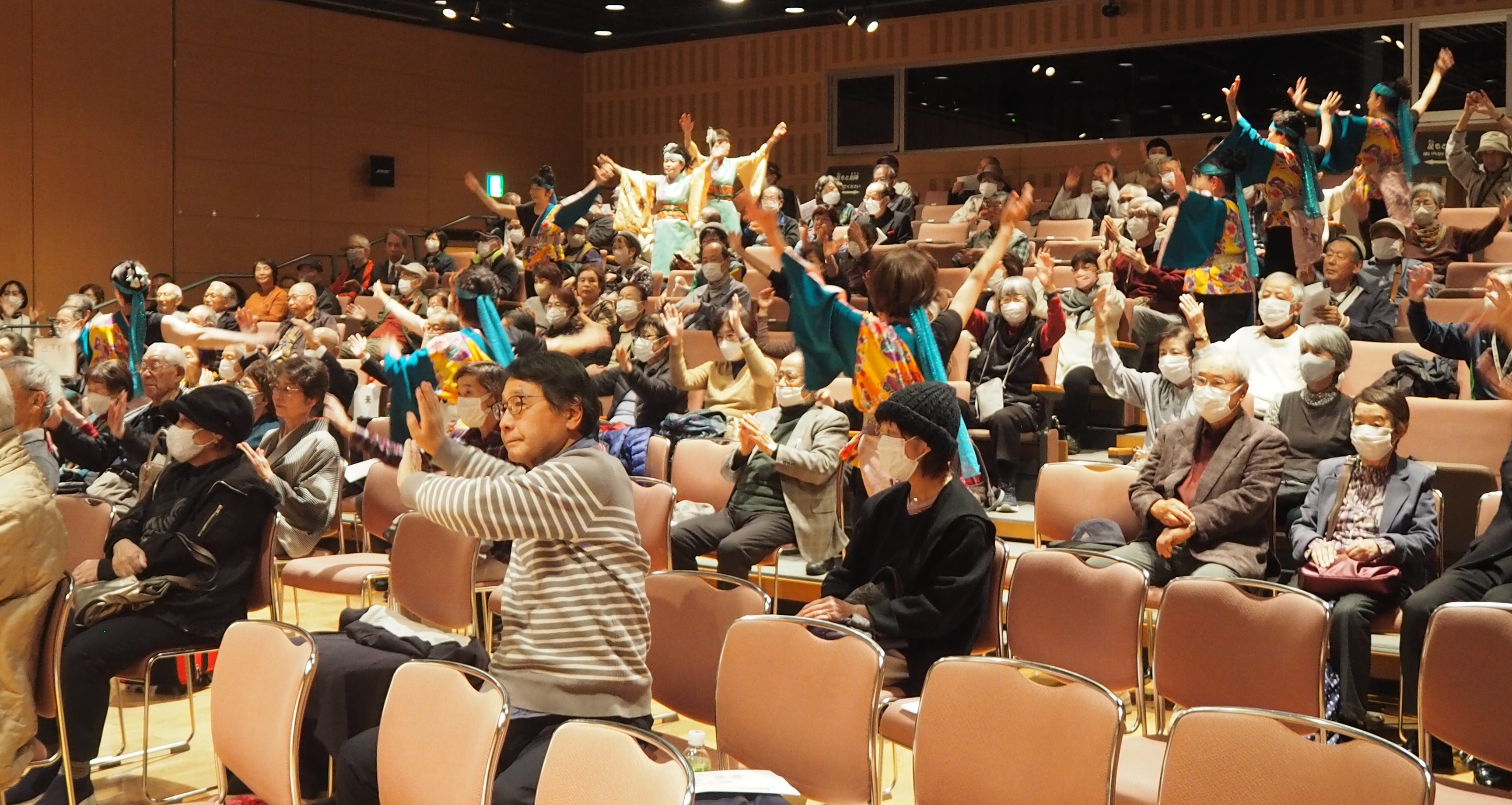11月5日(水)きららホールで、第35回芸能大会を開催しました。総来場者数316名、内出演者数116名、観客(含実行委員)203名。詩吟・謡曲同好会の練習成果の発表、踊りや楽器演奏、太極拳、作曲、コーラスなど幅広いジャンルの演目が披露されました。13期のクラスが再結集し修了パーティーで披露した替え歌の発表、昨年度の市民大クラスの班長さんからなるフォークグループの演奏などもあり、いきいき同窓会ならではの大会となりました。