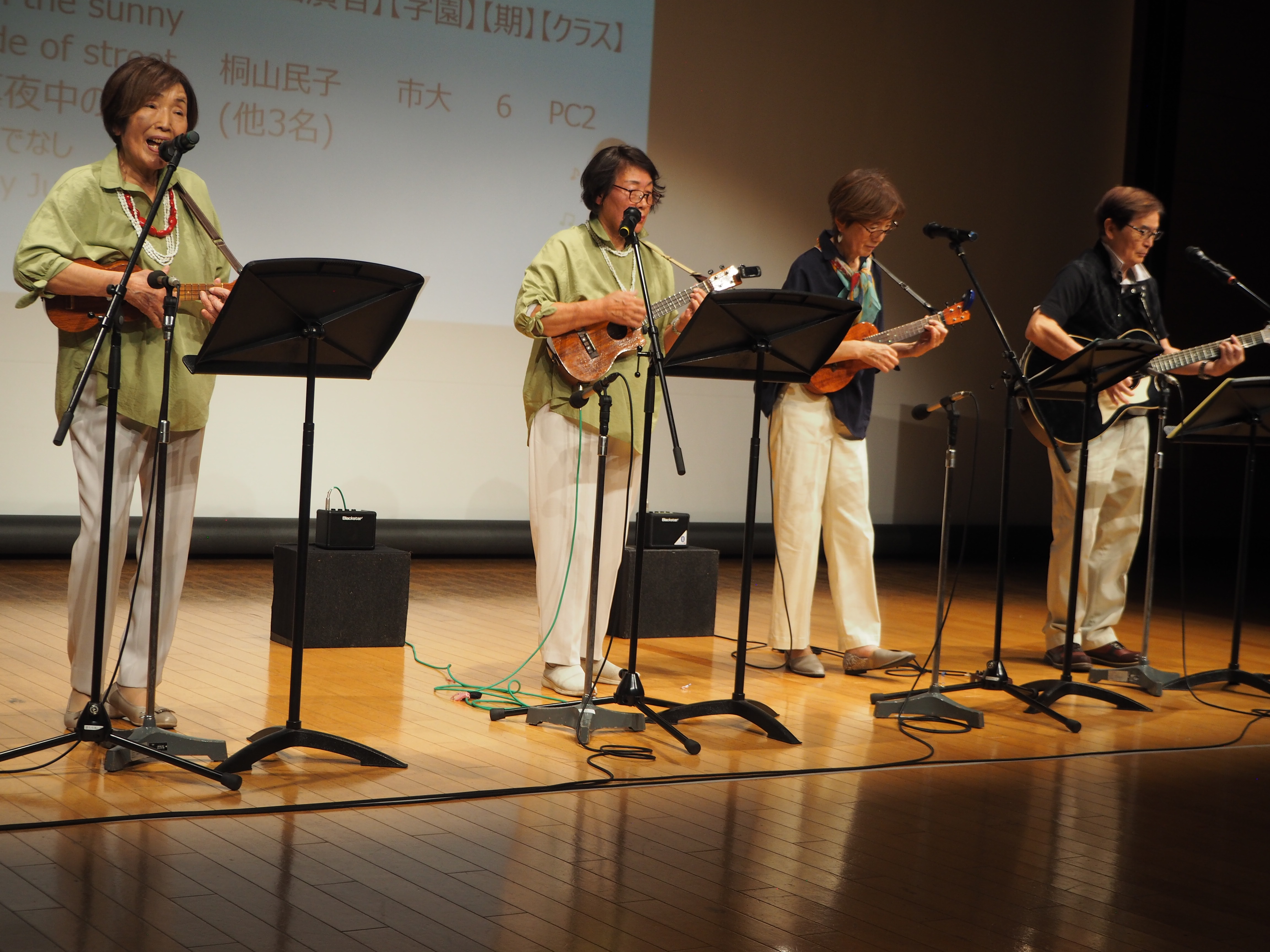 21期「こころとからだの健康」のクラスの班長さんたちが昨年の芸能大会をきっかけに結成したフォークグループです