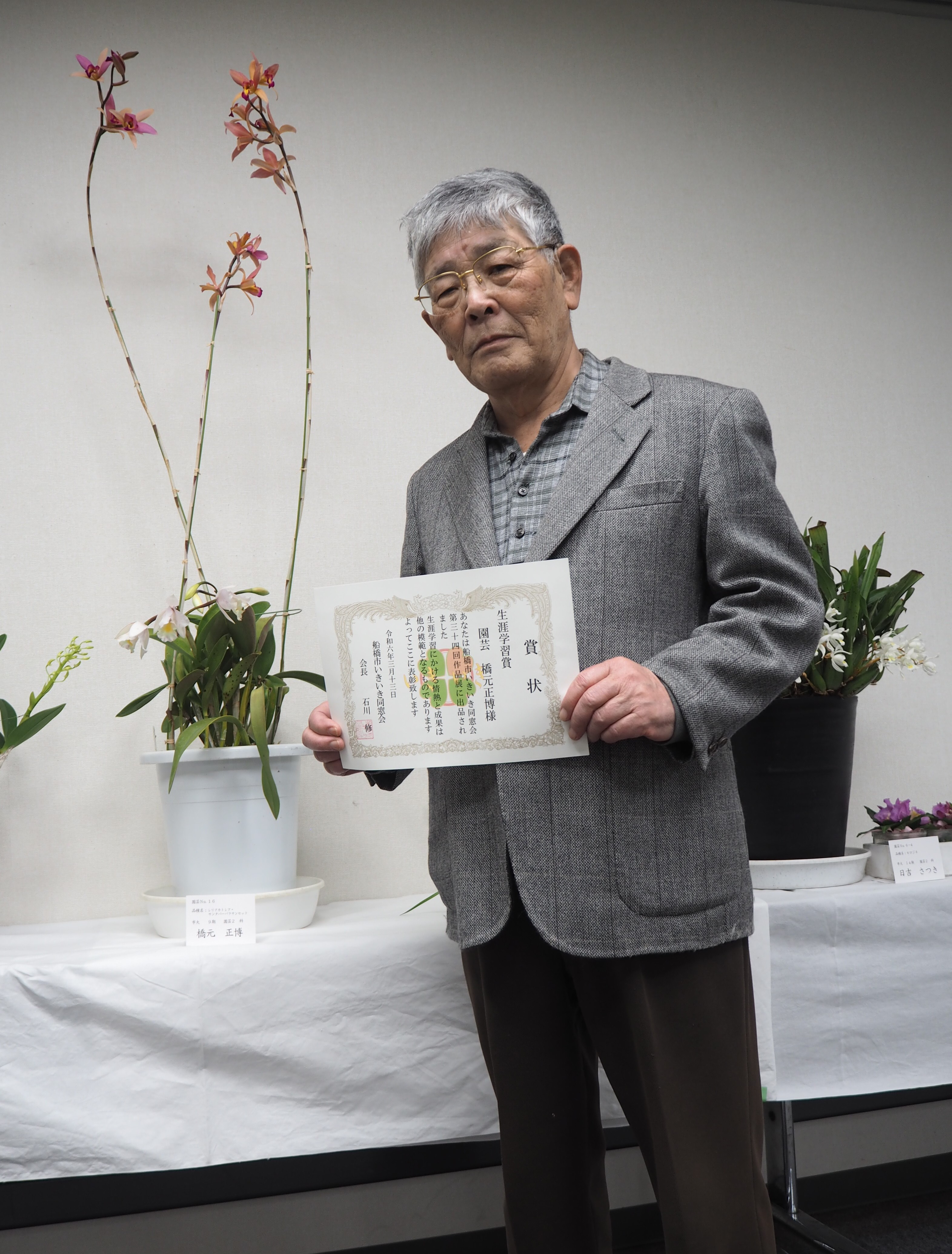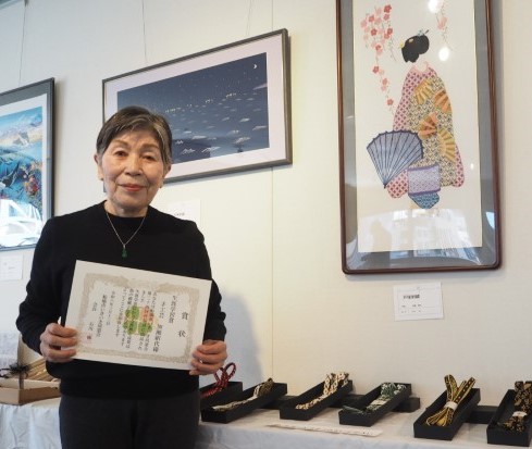 初日には80歳以上の出展者を対象にした「生涯学習賞」の表彰を行いました。