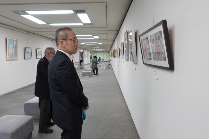松戸徹船橋市長も開場初日に来場され、質問や感想を交えながら、出品作品一点一点を丁寧に鑑賞されていました。