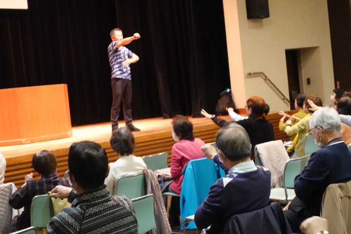 3月15日(土)中央公民館講堂で元NHK ラジオ体操講師の多胡 肇さんを迎え「ラジオ体操で筋肉を付けよう」と題した講演会を開催しました。