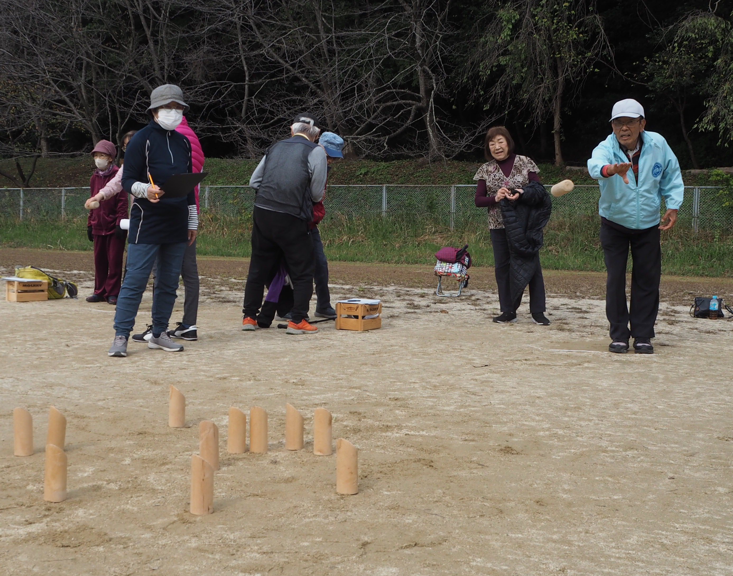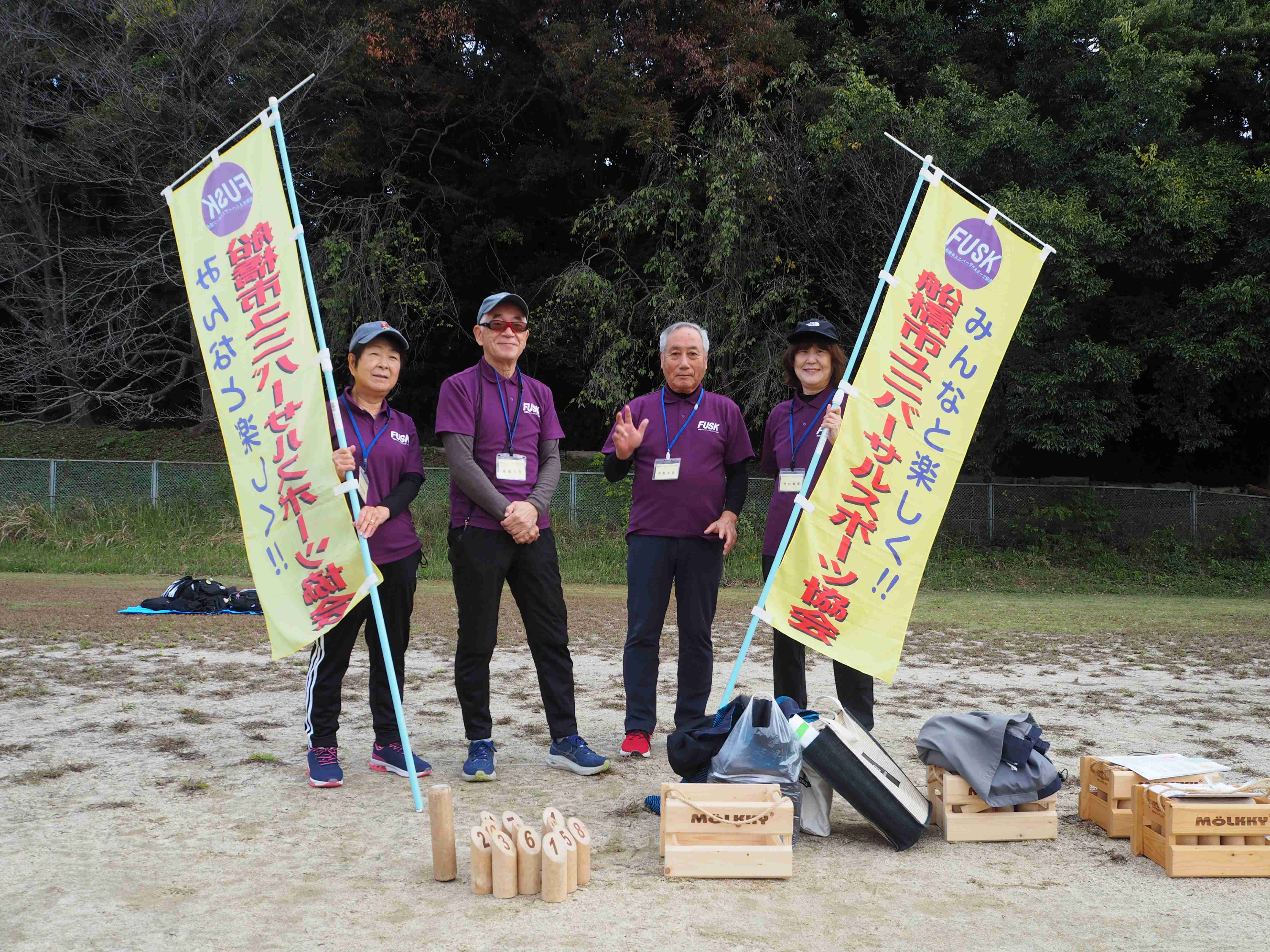 新しく登場した競技「モルック」です。船橋市ユニバーサル協会の方々から指導とご協力をいただきました。