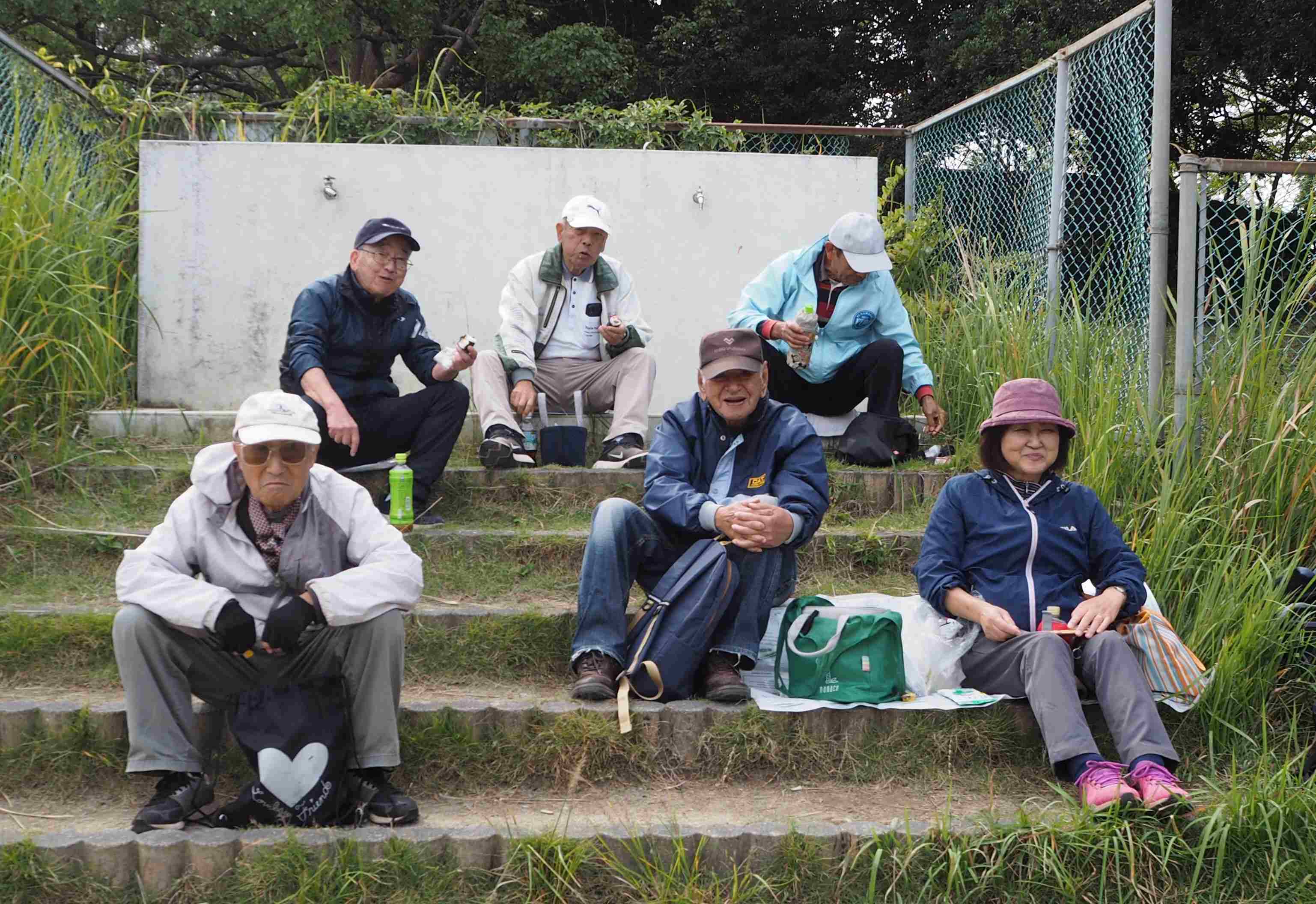 前列左より:小森正博(市大5陶芸)、塚本紘史(市大8教養1)、松原至考(市大9PC3)、俊 淳一(市大1園芸)、磯部吉晴(市大9健康1)