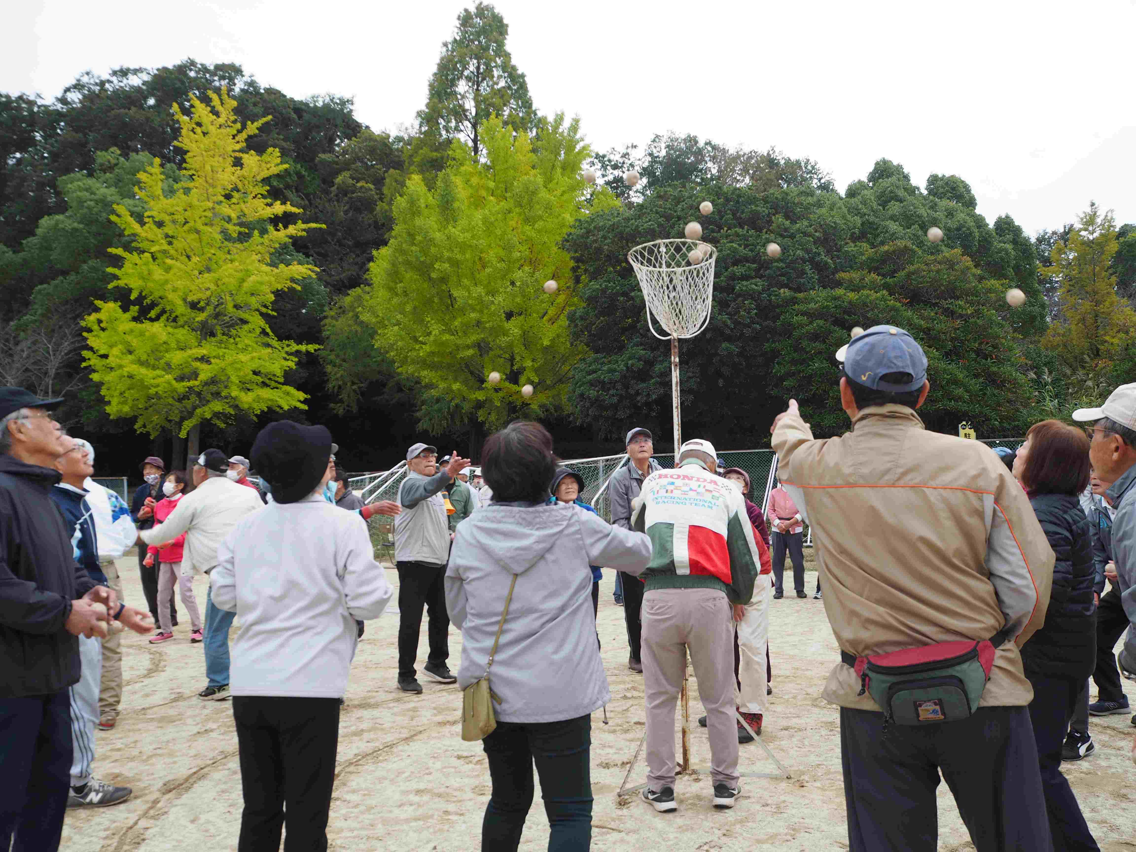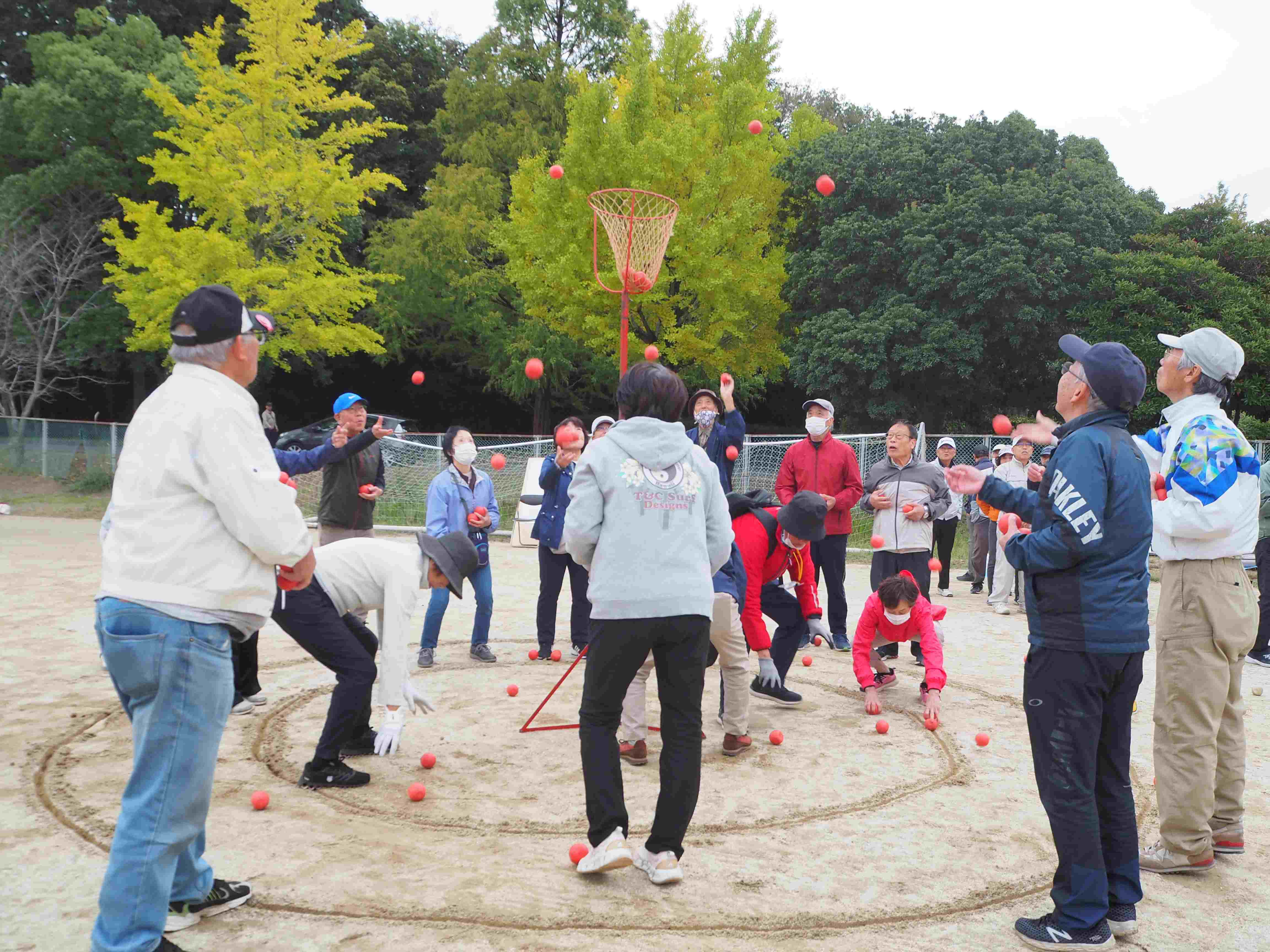 玉入れを全員で楽しみます。お楽しみビンゴ大会もあります