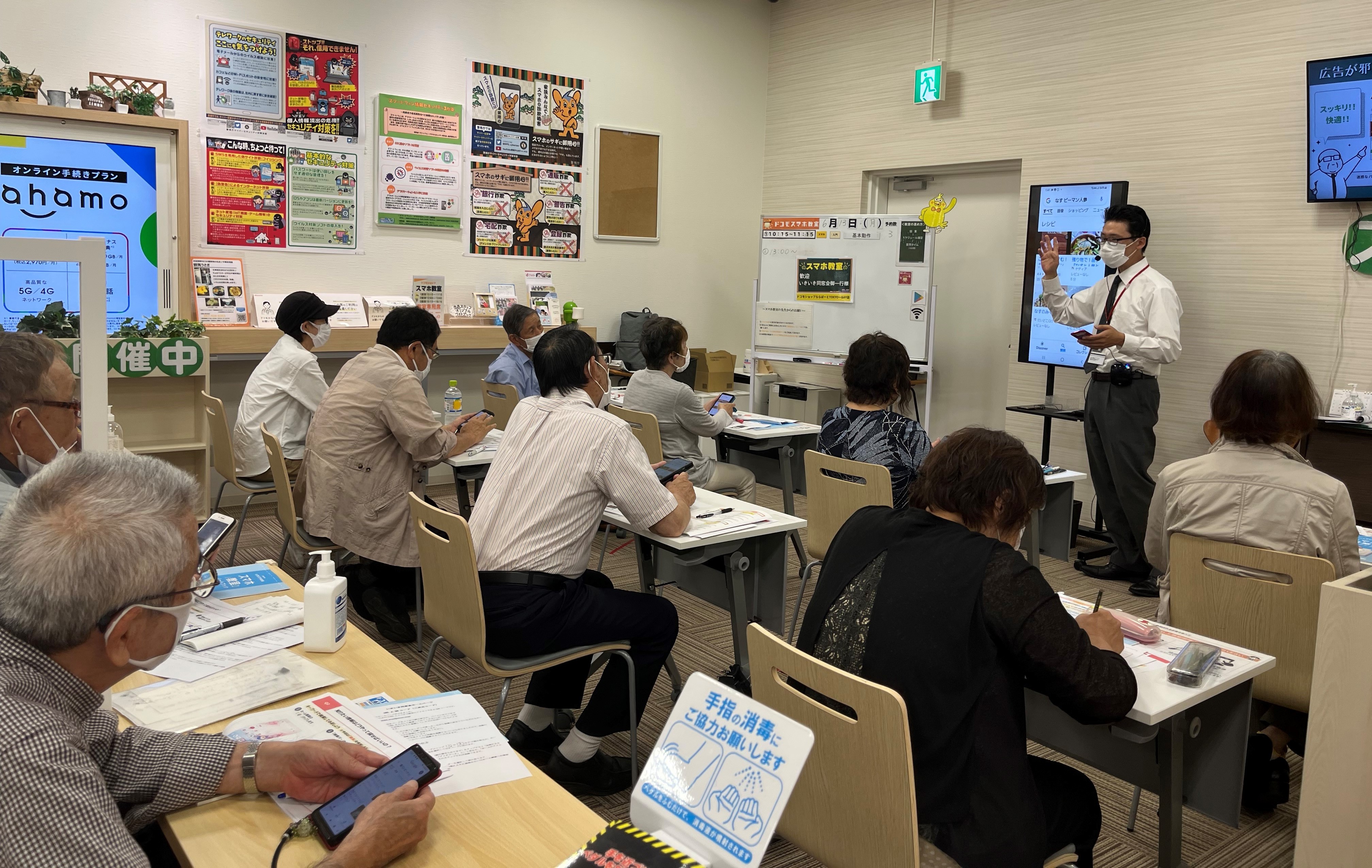 要望の多かったスマートフォンの講習会が、 NTTdocomoのご協力でららぽーとTOKYOーBAYのドコモショップで開催されています。同窓会会員向けに通常より拡大した90分の講習で、6月と7月はそれぞれ4回開催されました。