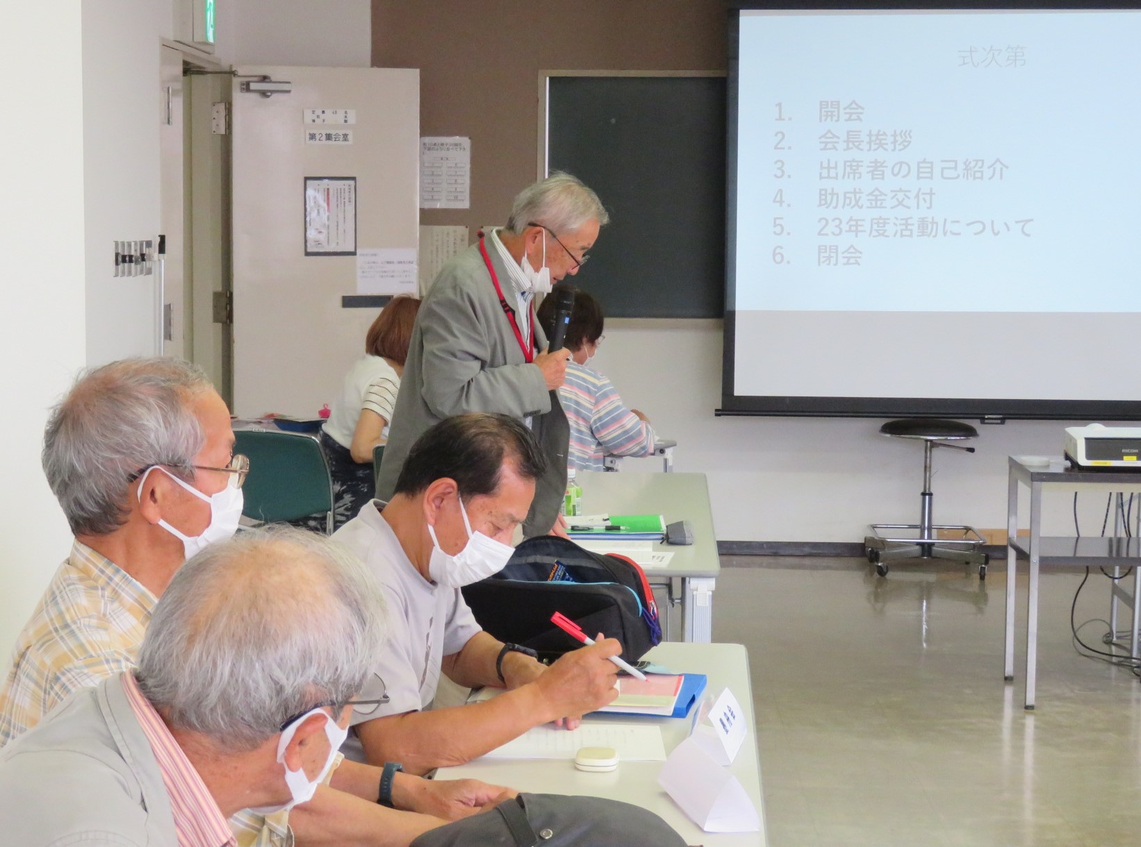 同好会推進部 井上部長からプロジェクターにより23年度の重点活動計画及びお願い事項などが説明されました。詳しくは下の写真より確認して下さい。 会の終わりに質疑応答で活発な意見交換がありました。