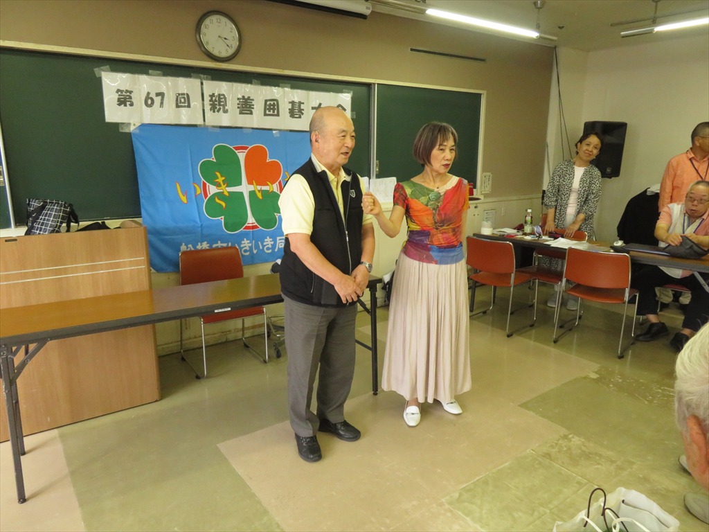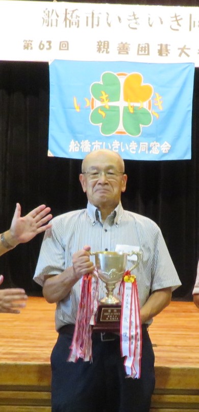 優勝された及川さんは囲碁大会実行委員長を務めておられます。コロナのために5回連続で大会が中止になりやっと今回3年ぶりの開催にこぎつけました。開催まで文教部の皆さん、関係者と大変な準備、苦労をされました。