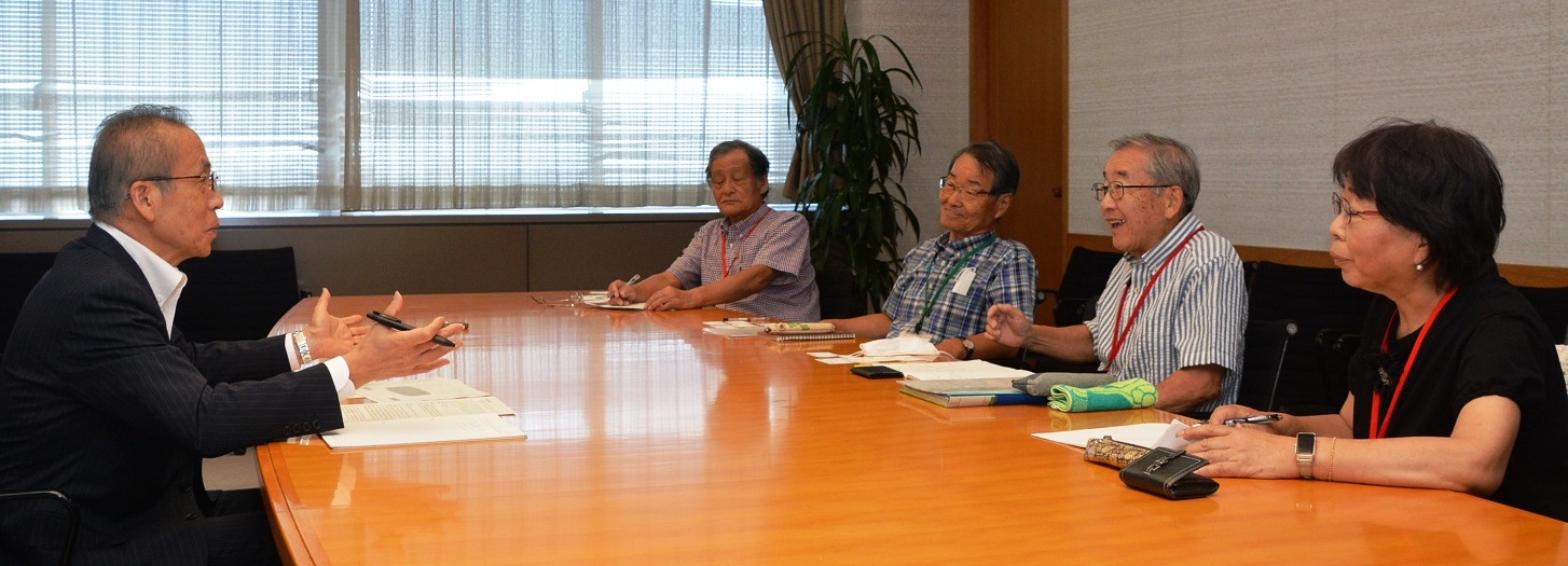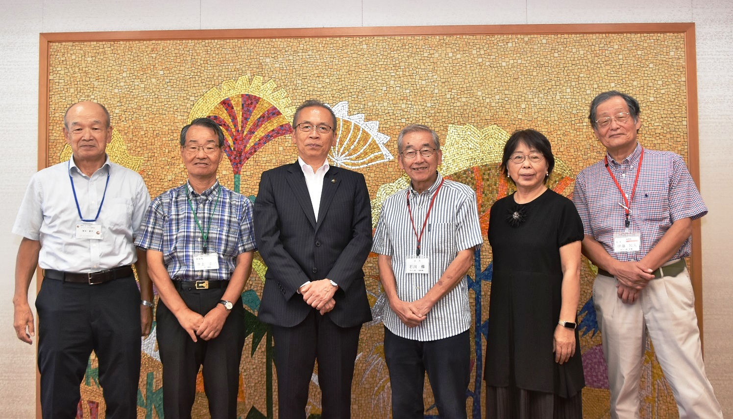 8月10日(木)、船橋市役所で松戸徹船橋市長といきいき同窓会役員の懇談会を行いました。「超高齢化社会におけるいきいき同窓会の役割」をテーマに同窓会の抱える問題、これからの課題、市民大学との連携の大切さなどについて話し合いました。