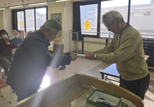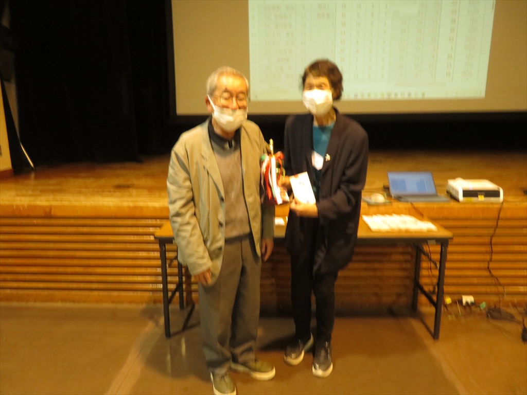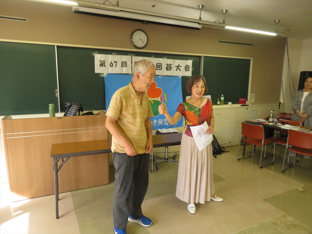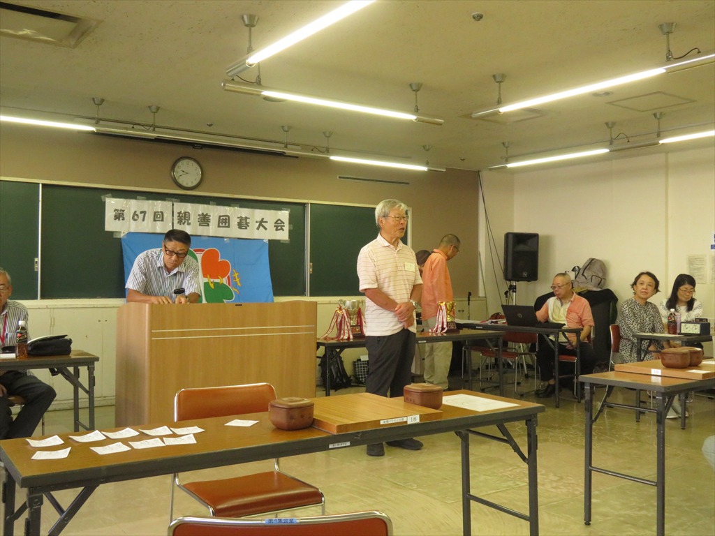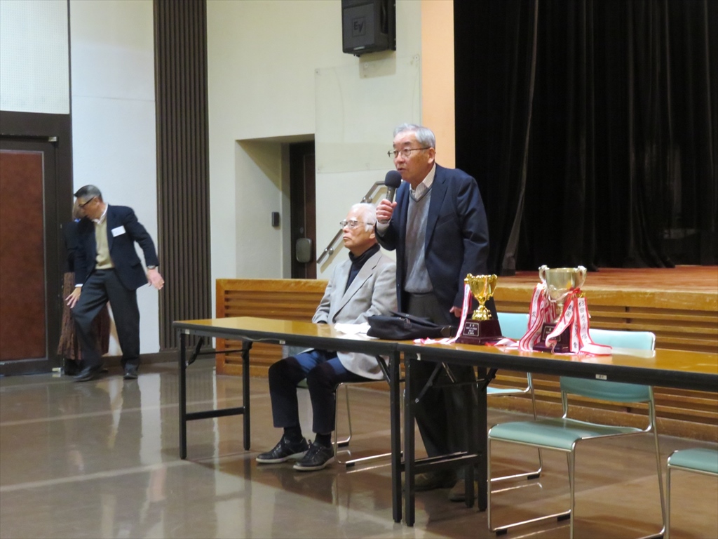対局は22名の参加者がA、Bクラスに分かれ夫々4局対局するリーグ戦で行われました。結果Aクラス優勝は杉浦敏弘さん(20期。くらし2)、Bクラス優勝は小俣宗男さん(4期・文A)となりました。A,Bクラス成績上位3名と敢闘賞1名に賞品が授与されました。また、参加者全員のお楽しみ抽選会で6名の方々がラッキー賞をゲット。大会運営に朝早くから終了までご尽力いただいた文化部役員の皆さまに感謝申し上げます