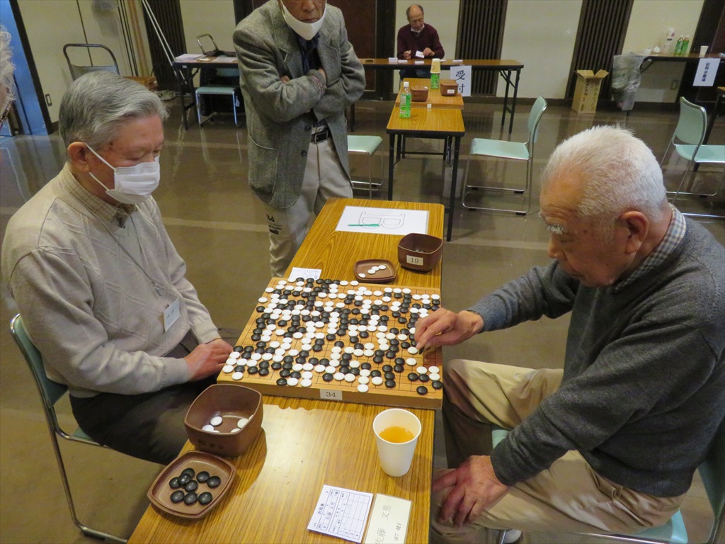 いきいき囲碁大会も、今回で67回目を迎えました。高齢化が進んだためか、参加者の減少が続き開催も危ぶまれましたが、今回は24名の参加申込がありました。 が残念なことに、前日のキャンセル2名があり、22名をA/Bの2クラスに分けての4回戦の戦いとなりました。戦果はともかく、皆さん互いに久しぶりのお話も出来て和気藹々の楽しい囲碁大会になったことが嬉しい限りでした。(囲碁大会実行委員長 及川捷三)