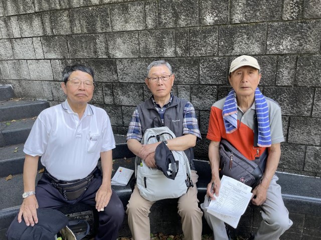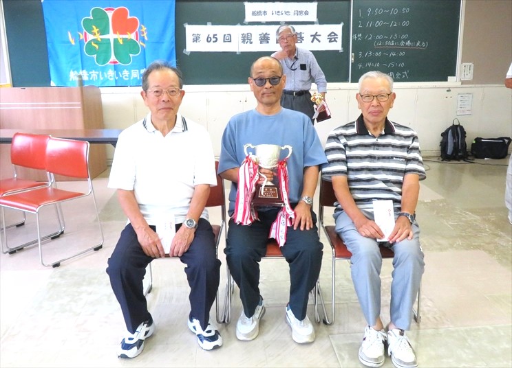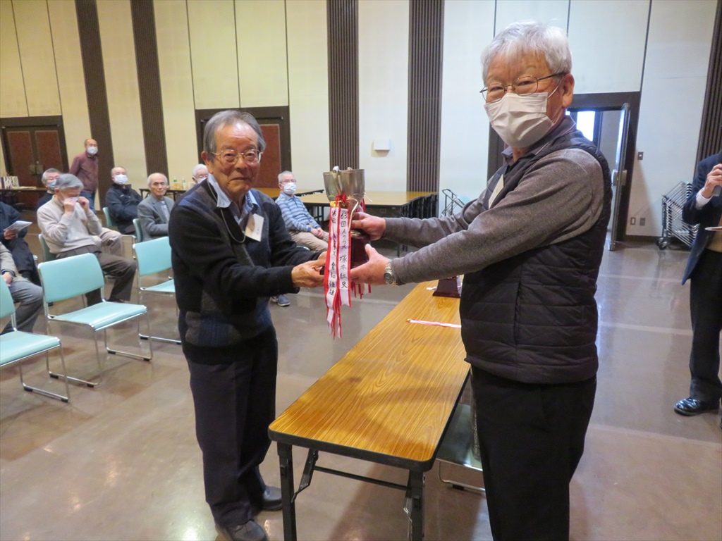 優勝:杉浦敏弘さん(20期・くらし2)写真中央 準優勝:山越國利さん(6期・教養B)写真左 3位:大谷隆さん(5期。教養)敢闘賞:斎藤光男さん(10期・健康2)