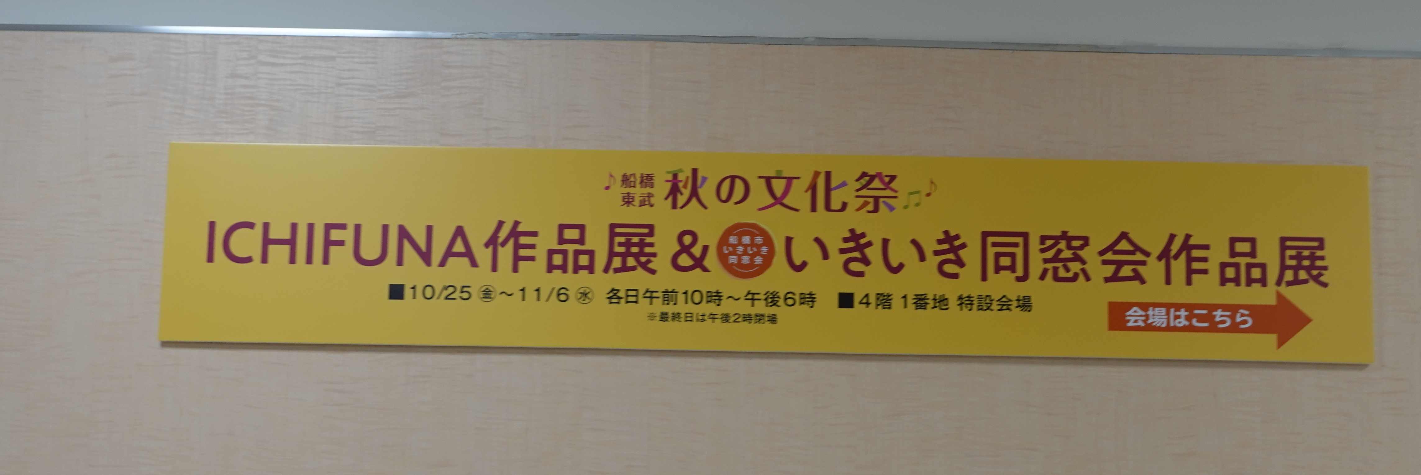 10月25日~11月6日、東武百貨店の文化祭に参加、写楽会・彩舟会・八葉会・川柳同好会が参加。作品や日頃の活動の様子を発表しました。期間中100名あまりの方々が来場しました。