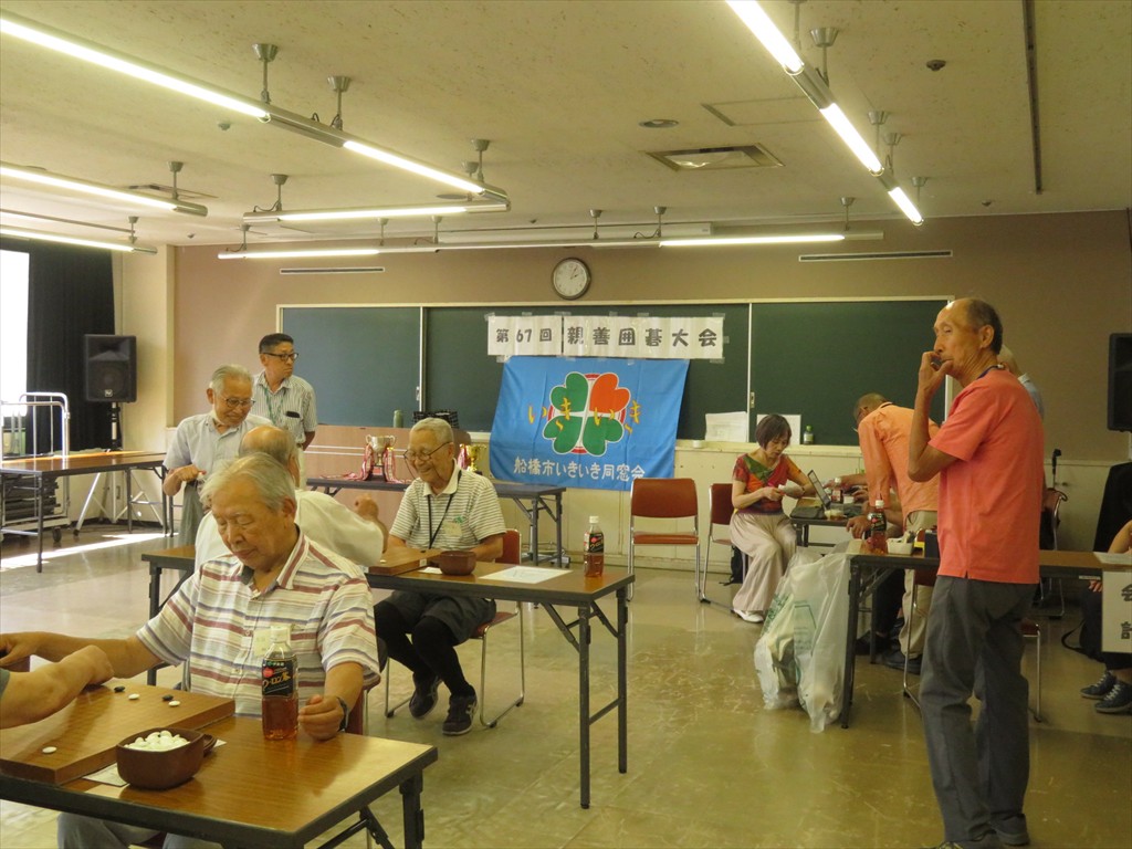第65回いきいき同窓会親善囲碁大会が8月21日中央公民館で開催されました。開会式は石川同窓会会長、山下功 船橋市囲碁協会会長の挨拶のあと松戸市長からの祝電が披露され、熱戦の火ぶたが切って落とされました。