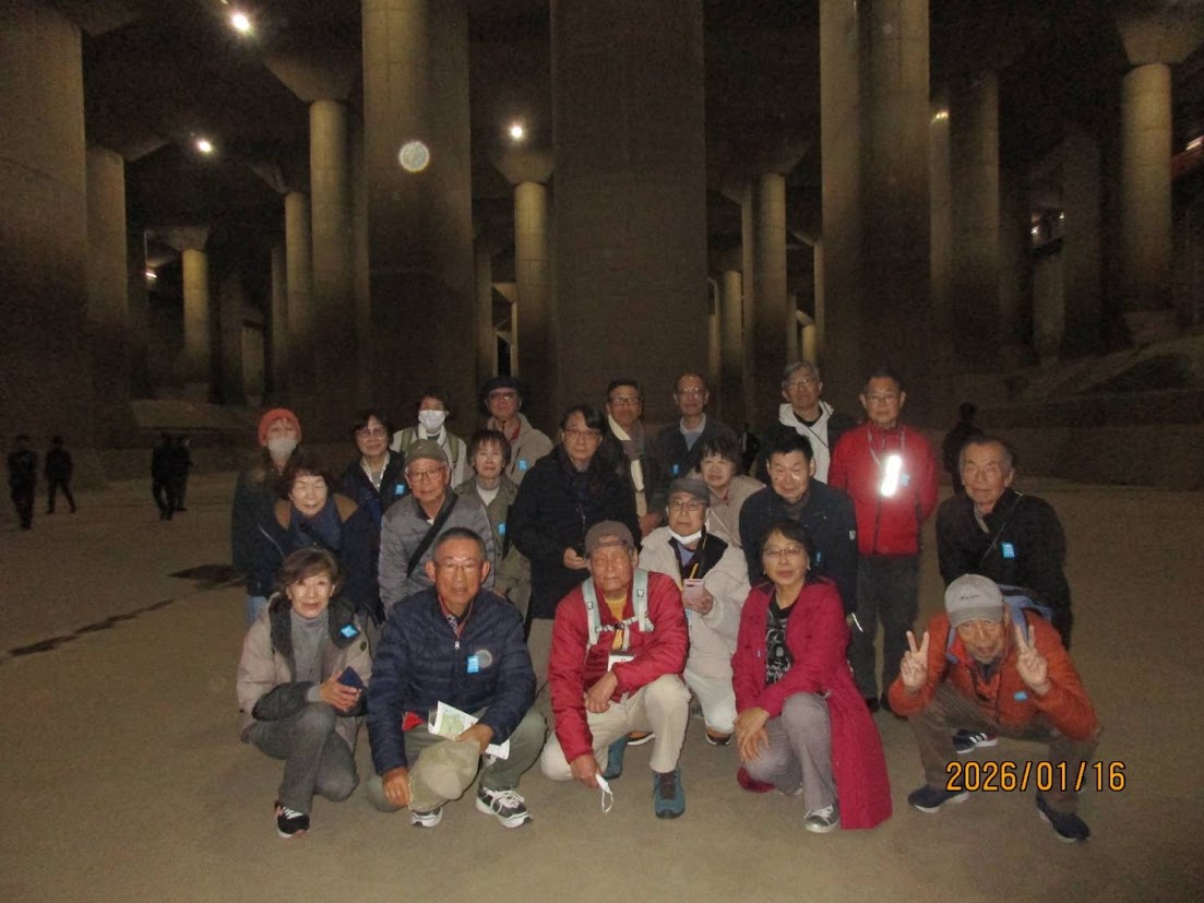 2026年1月16日、埼玉県春日部市にある世界最大級の地下放水路「首都圏外郭放水路」の同窓会主催・見学ツアーを開催しました 。 快晴に恵まれたこの日、参加者25名は、船橋からバスに乗り込み、非日常の体験を求めて出発しました 。