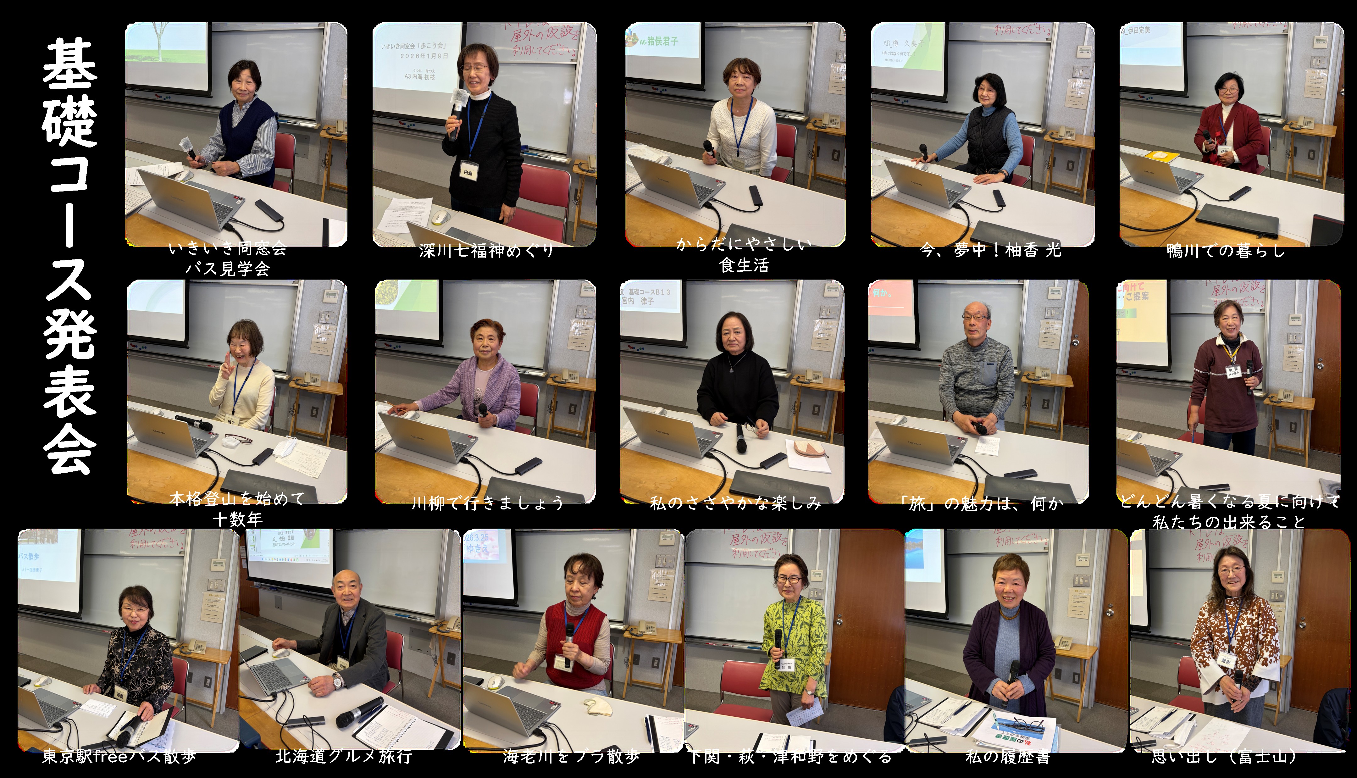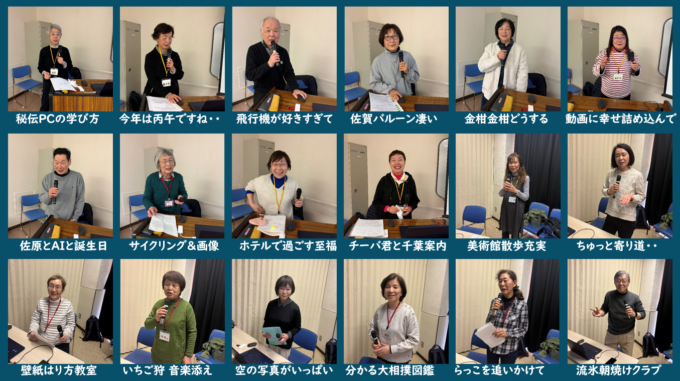互いの発表への賞賛や、欠席された方への温かい言葉が飛び交いました。PC・スマホを活用し、これからの人生をさらに豊かにしていこうという前向きなエネルギーに満ちたお開きとなりました。