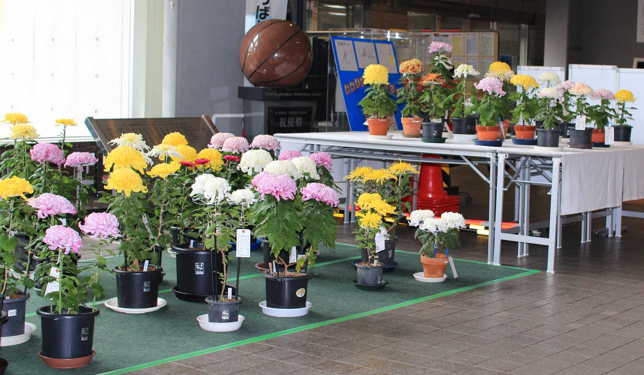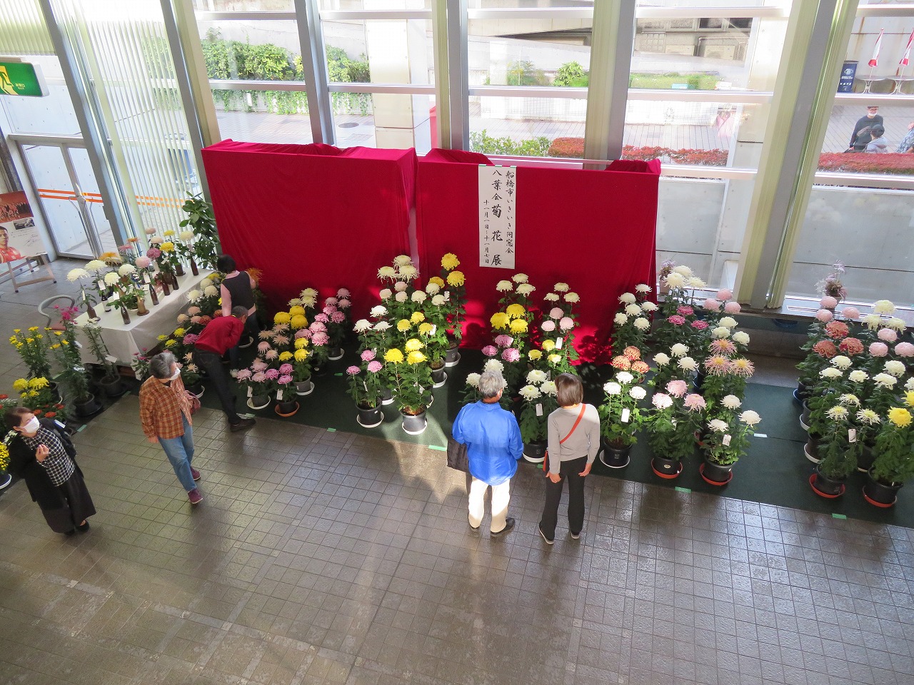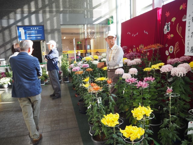 11月13日(木)~11月18日(火) に船橋アリーナ(サブアリーナ1階ロビー)で開催中の菊花展の様子です。