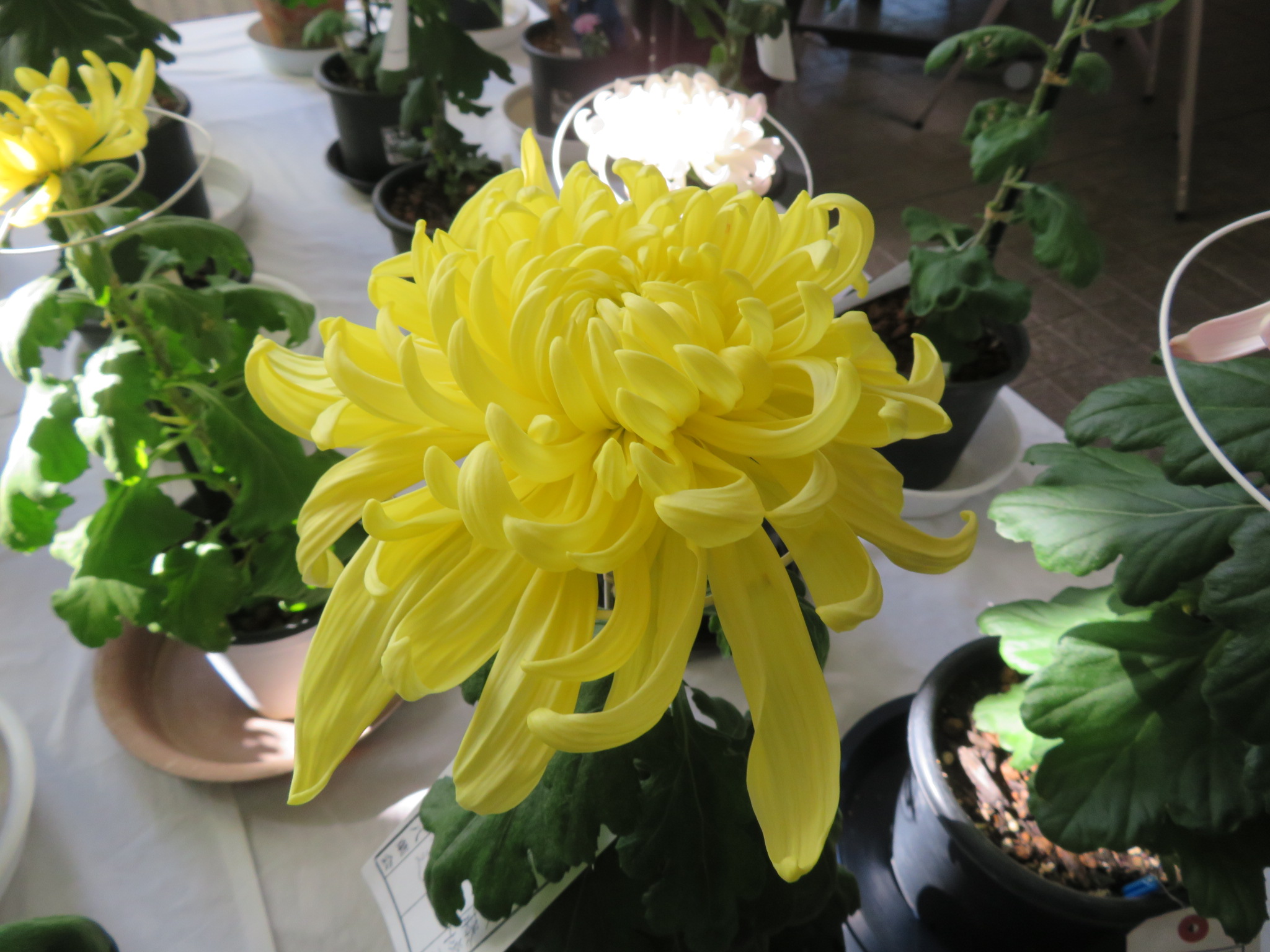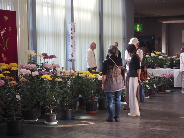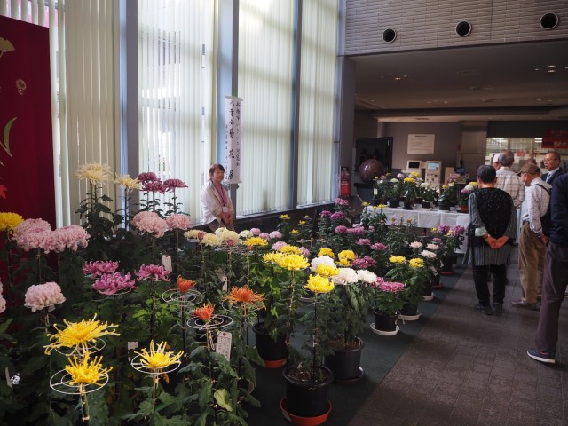 会員の丹精込めた約120鉢の菊が出展され、見事に開花した菊は訪れた人たちの目を楽しませていました。