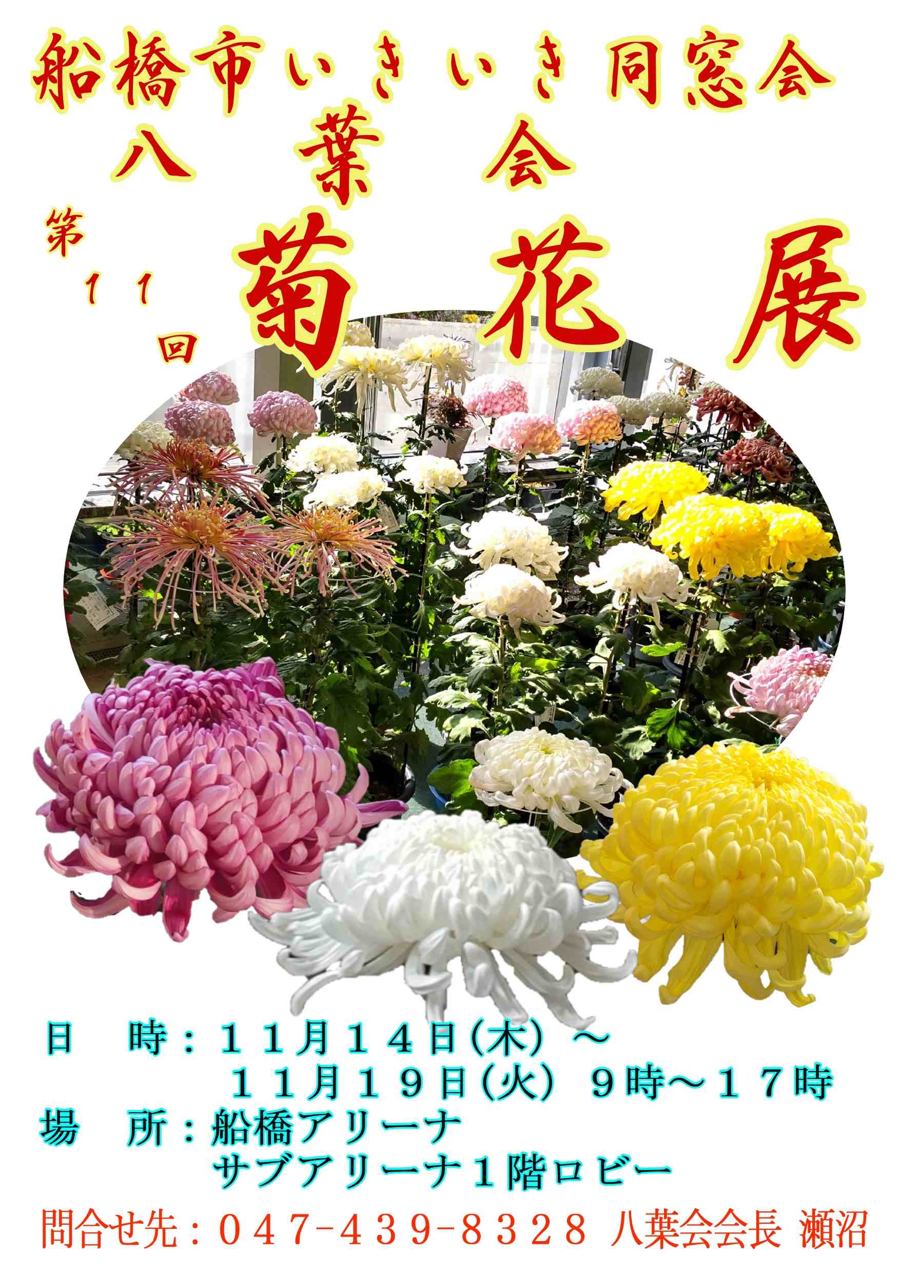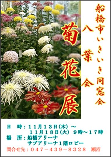 今年の菊花展が船橋アリーナで始まります。丹精こめて育てた見事な菊をお楽しみください。