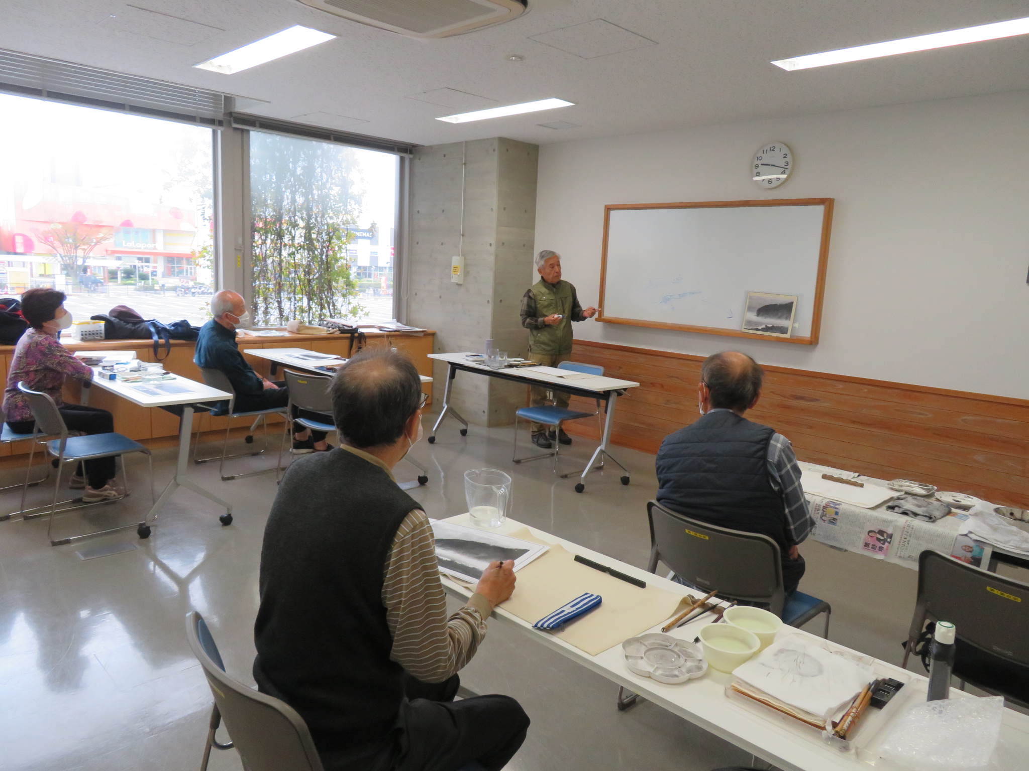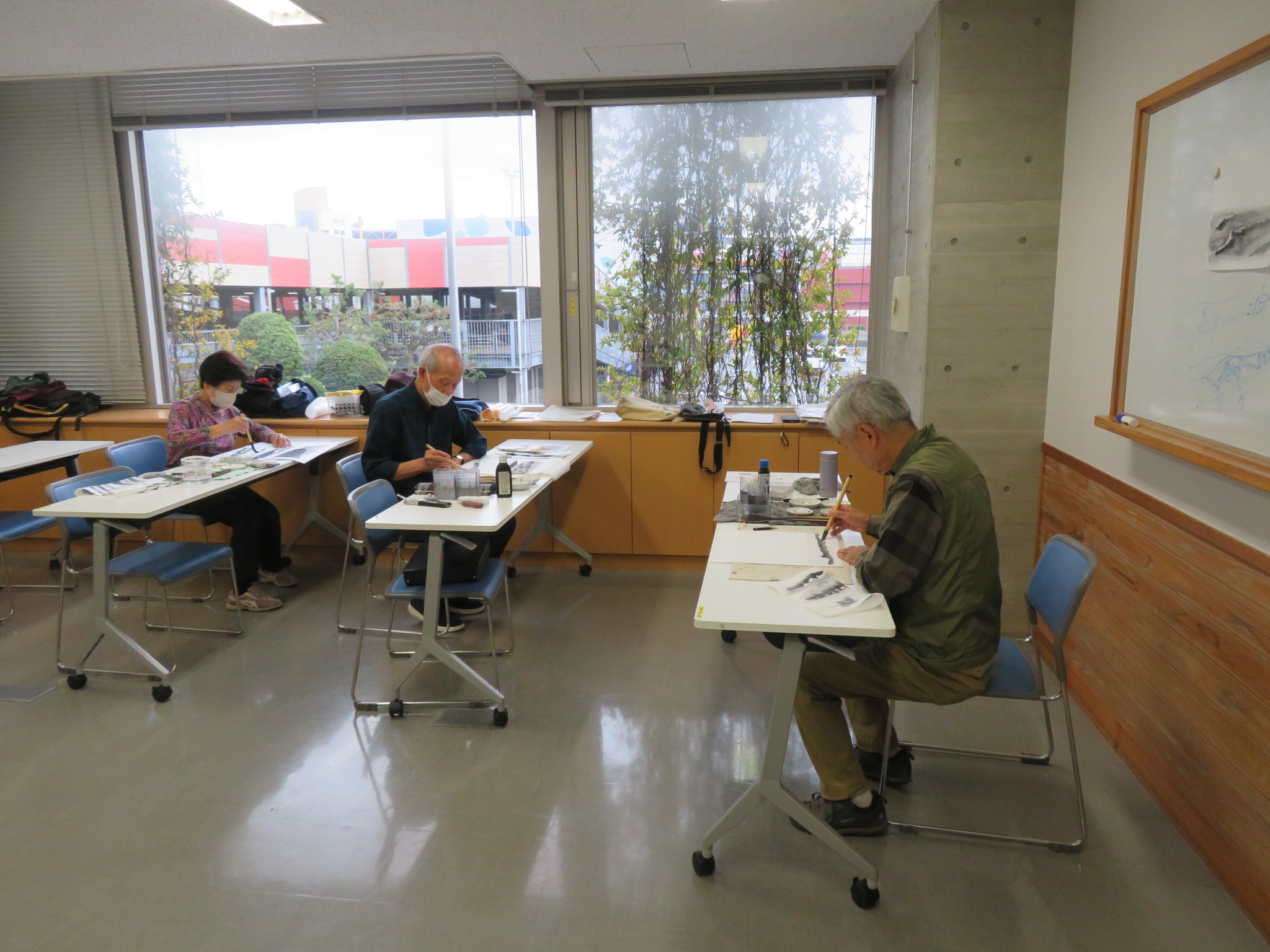 明るい雰囲気の会で初心者の方も楽しく参加しています。絵の趣味を持つことで、筆を使って白い紙に描くことから脳を活性化し、好きな四季の景色や静物を探すことで体も動かしましょう。