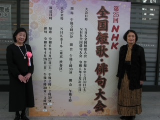 3月30日に開催されたNHK第25回全国短歌大会で草萌短歌同好会の根本恵子さん(16期教2)の上の作品が、吉川宏志選、自由題特選 第1席に選ばれました。