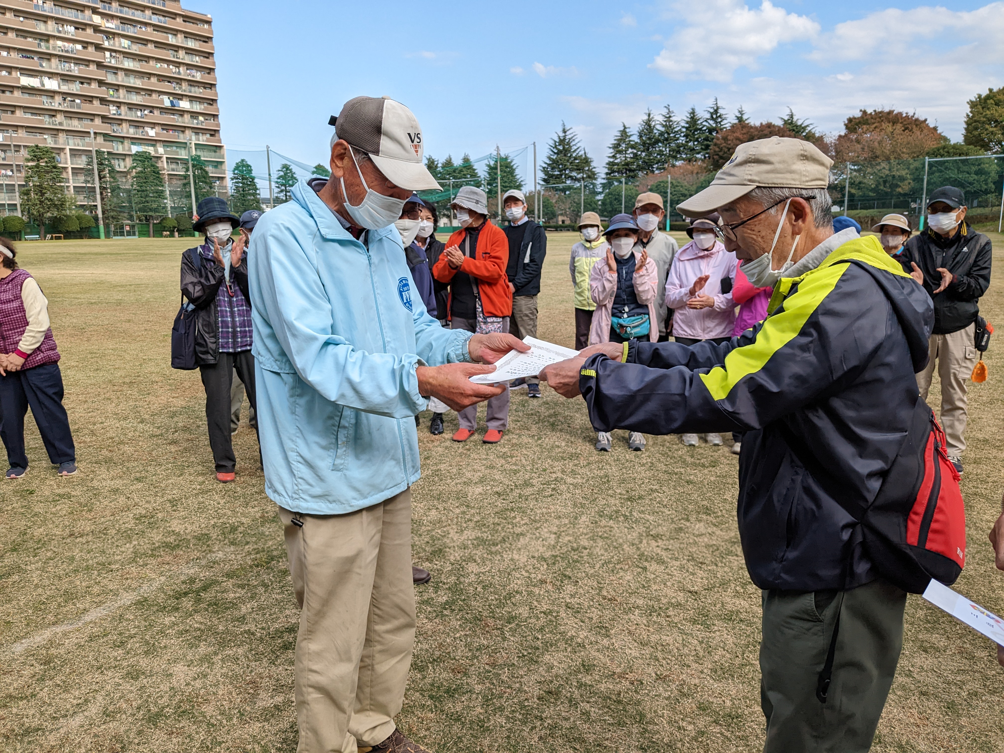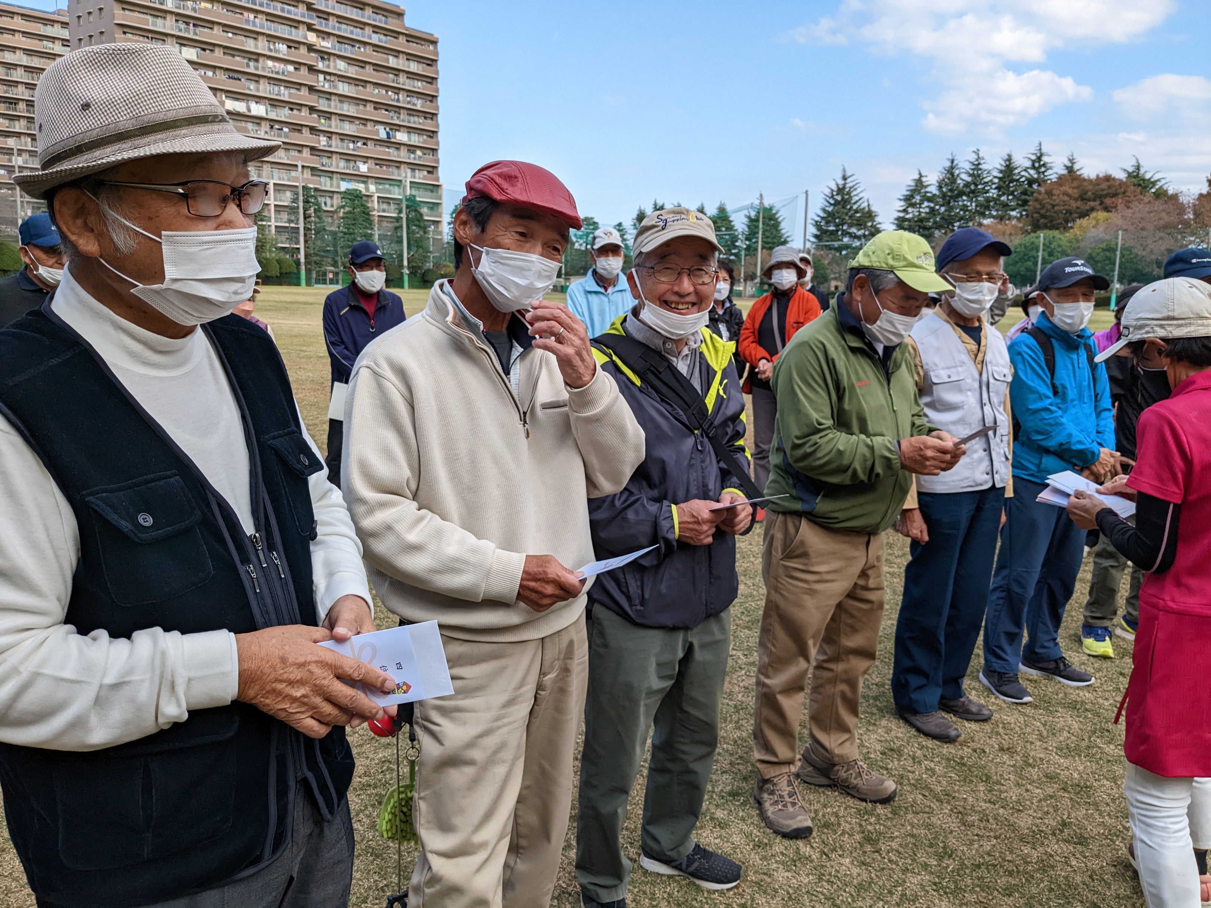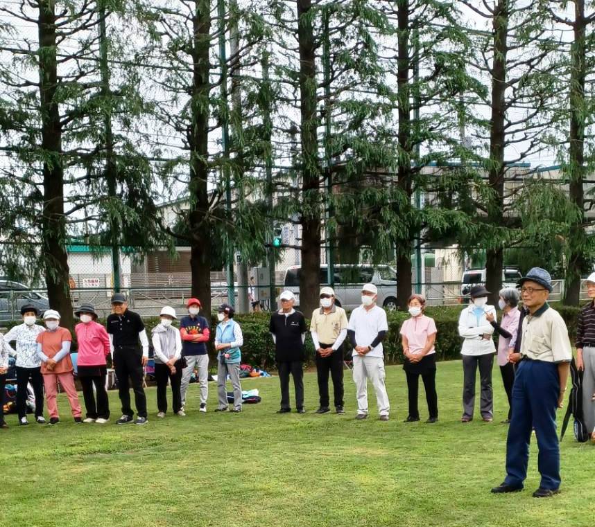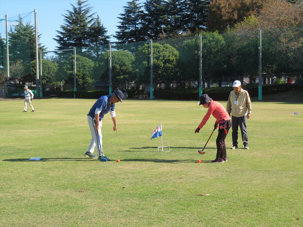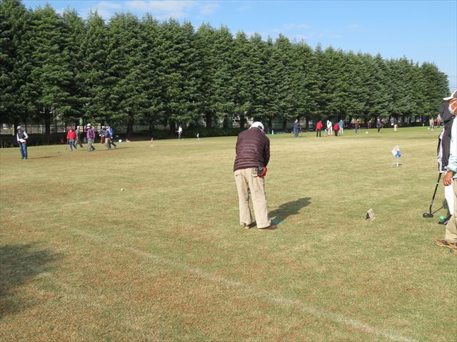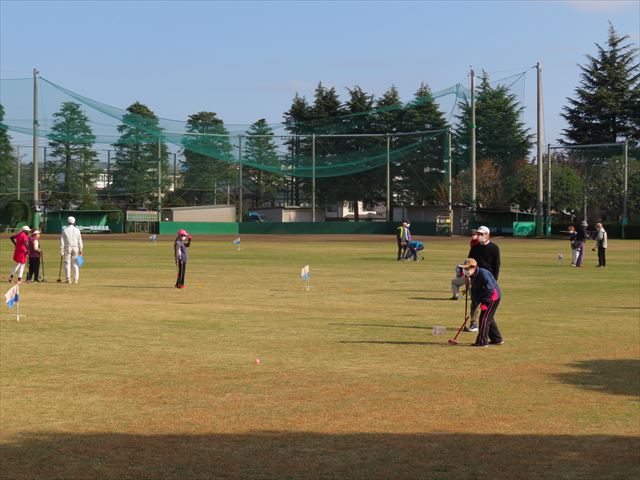 11月12日(水)法典公園多目的広場(グラスポ)でグラウンドゴルフ秋季大会を開催しました。朝、東武線の踏み切りがなかなか開かず、大渋滞でグラスポに到着するのが遅れた人がでて開始が遅れるというハプニングがあったものの、天気には恵まれ、楽しい1日を過ごすことが出来ました。