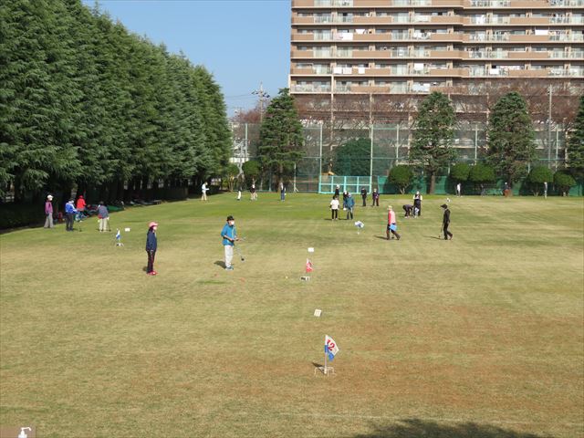 標準コースのコートには、60m×40m ほどの広場に8ホールを設定しますが、実際には使用できる場所の広さや、参加人員などにより距離や、ホール数を適宜設定すれば良いのです。