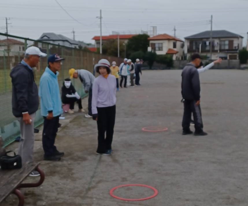 10月25日(土)秋季ペタンク大会を開催しました。 開始前の準備をしているときは、雨がしとしと降っていて、どうなるかと不安でしたが、競技中は、雨は降りませんでした。ラッキーでした。